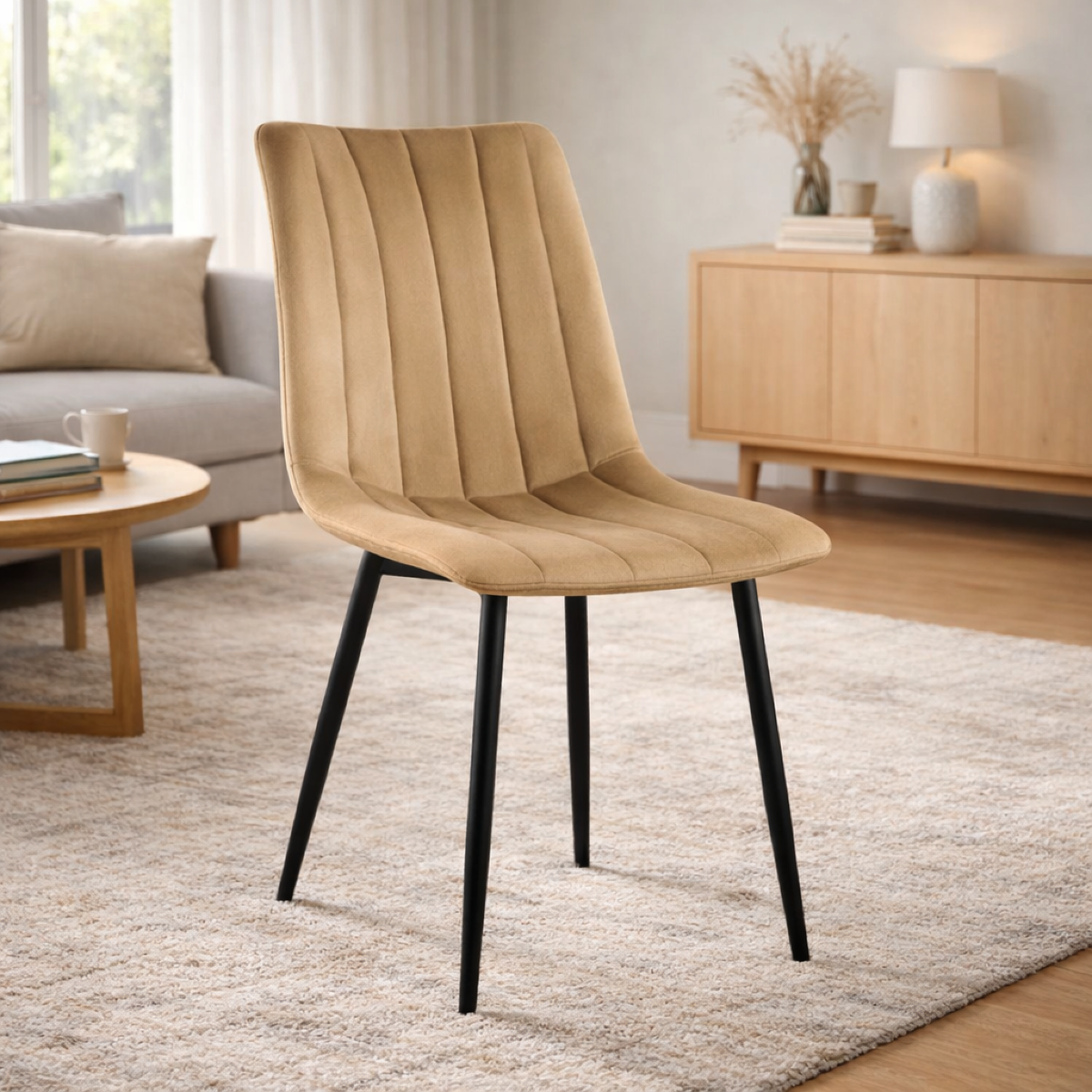 Krzesło tapicerowane do salonu Tom jasno brązowe welur, nogi czarne