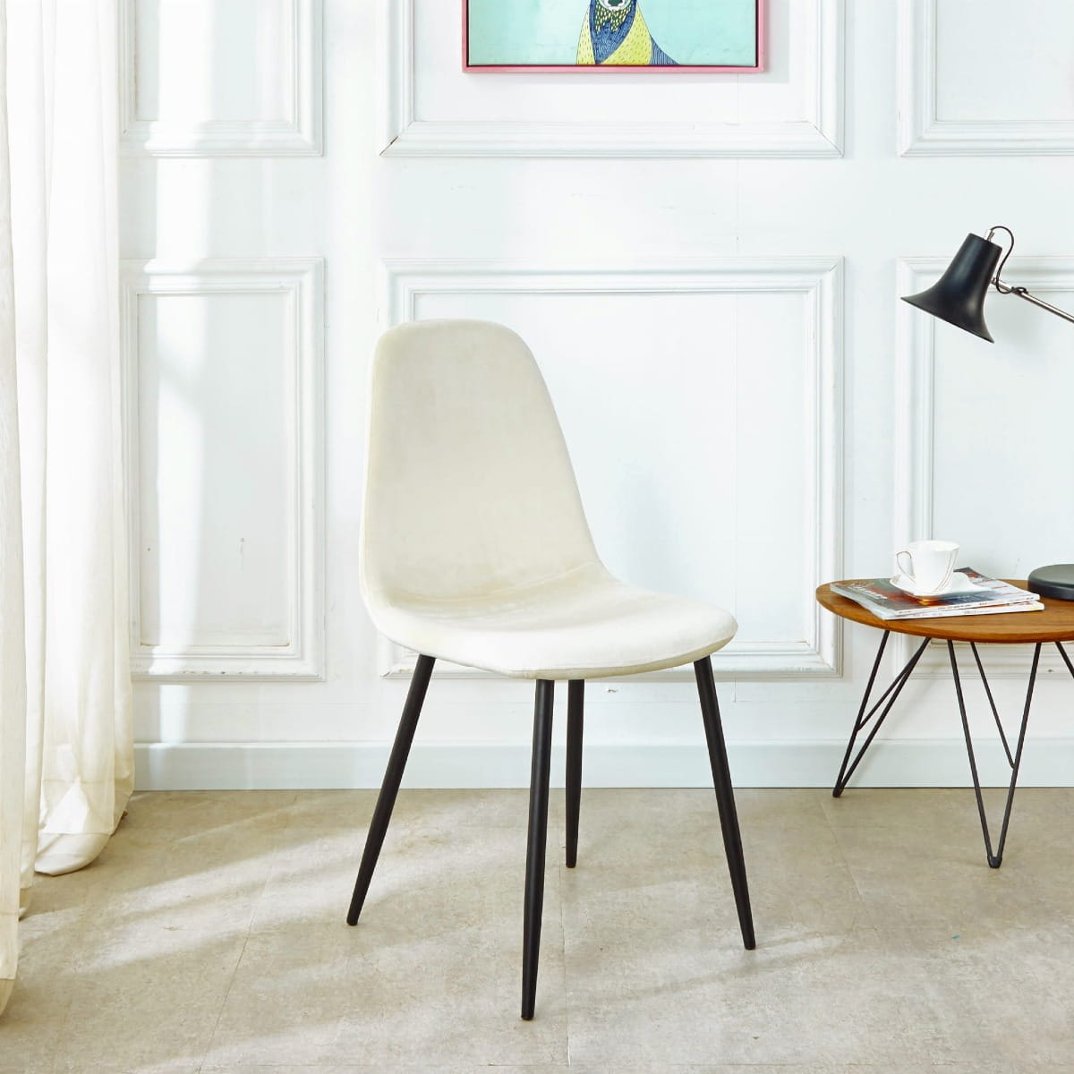 Krzesło tapicerowane do salonu Tom kremowe welur, nogi czarne