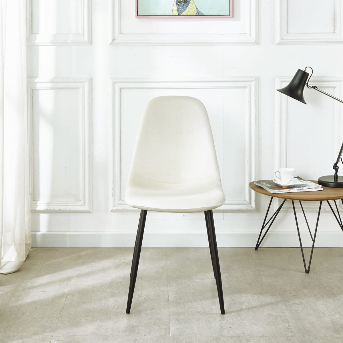 Krzesło tapicerowane do salonu Alan kremowe welur, nogi czarne