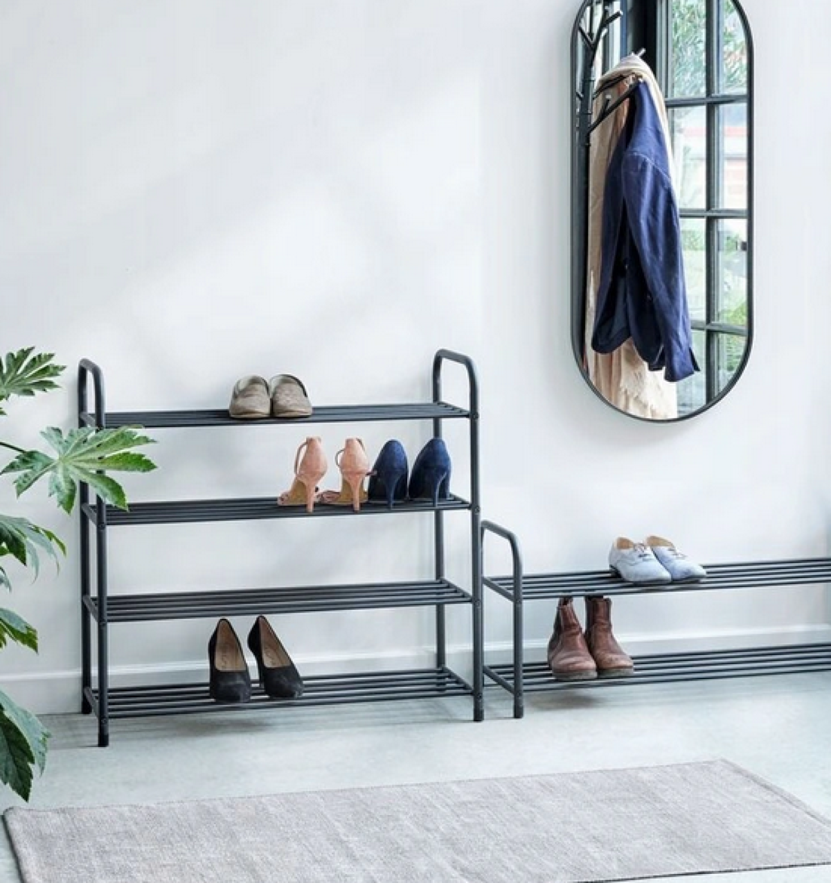 - Piękny stylowy czarny regał na buty.