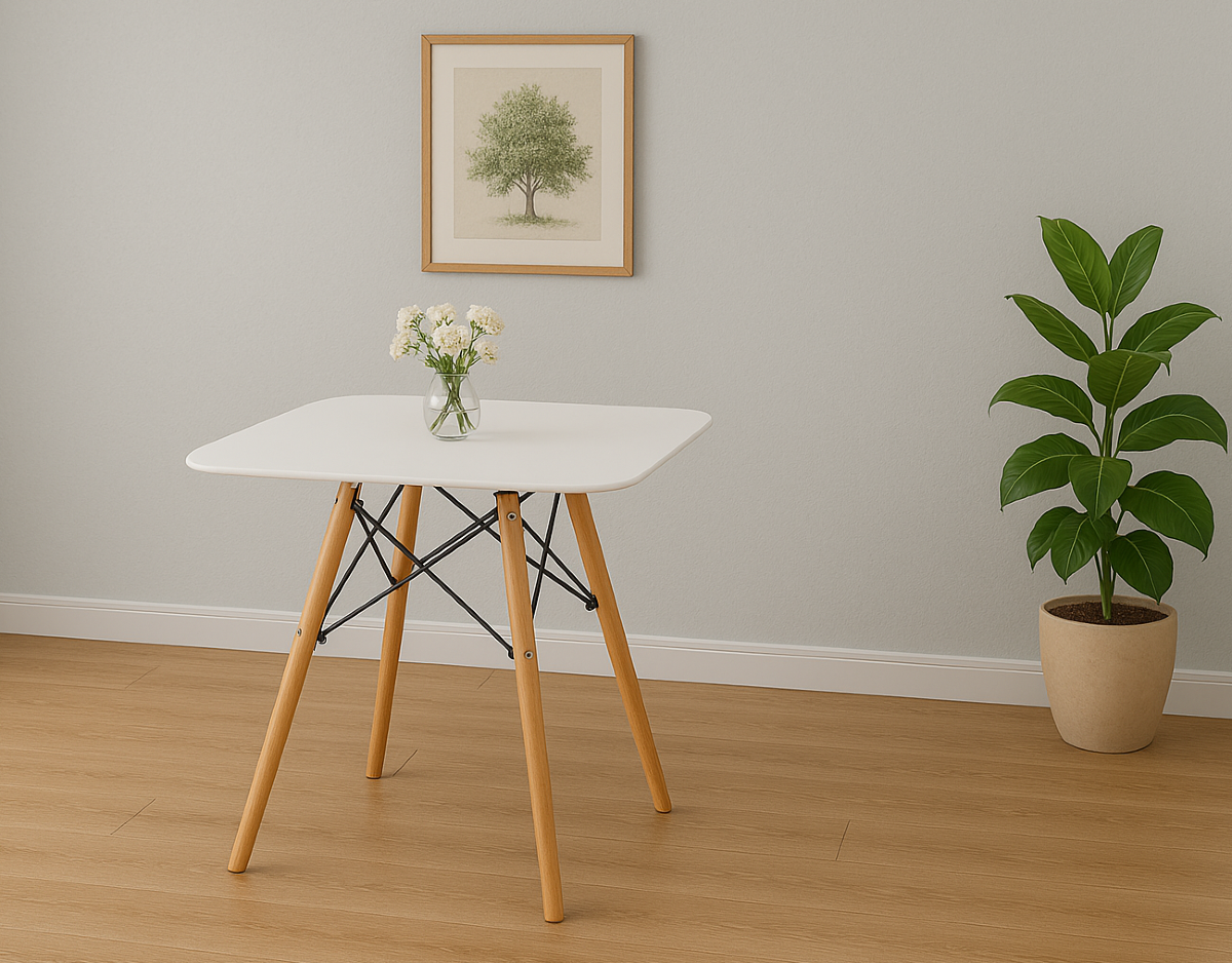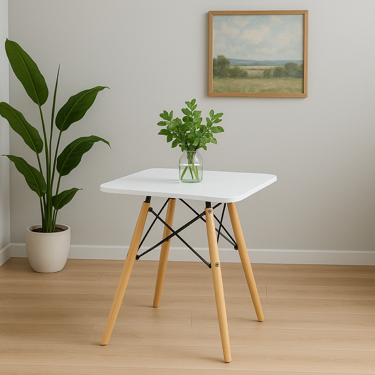 Wygodne Wymiary: Kwadratowy kształt stołu sprawia, że doskonale nadaje się do wielu pomieszczeń, zarówno w domu, jak i w biurze czy restauracji. Jego kompaktowe wymiary pozwalają zaoszczędzić miejsce, jednocześnie oferując odpowiednią powierzchnię do pracy, jedzenia czy spotkań.