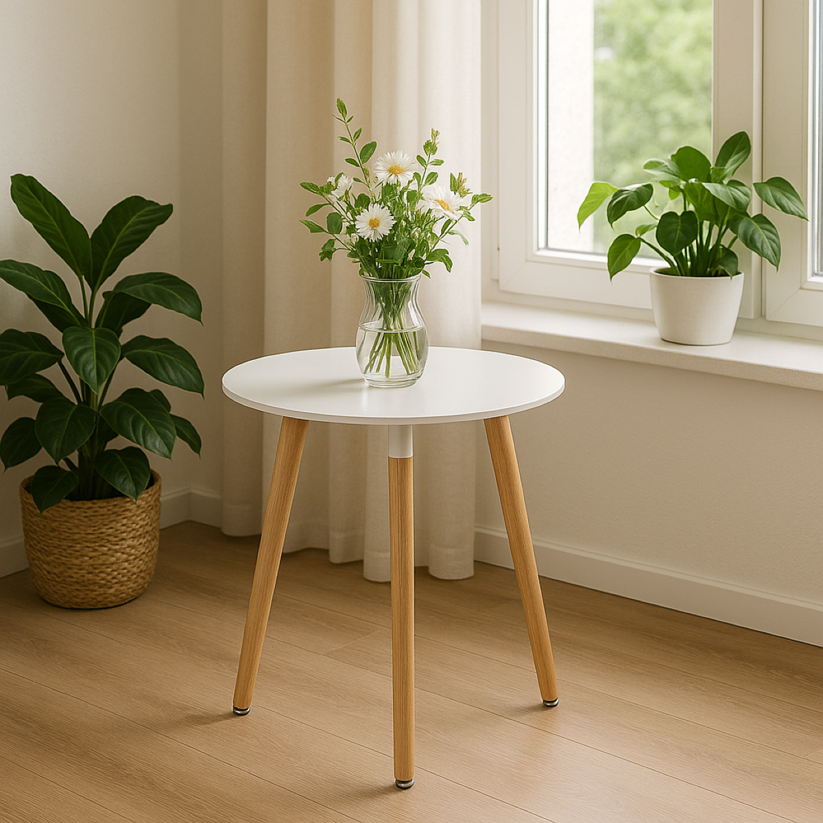- Kolor i materiał blat - MDF biały, nogi - bukowe
