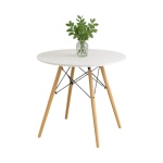 Całość prezentuje się nie tylko funkcjonalnie, ale również estetycznie, tworząc idealne miejsce do wspólnych posiłków czy rozmów. Stół okrągły, biały, wykonany z płyty MDF na nogach bukowych to wyjątkowy mebel, który doda wnętrzu subtelności i stylu, jednocześnie zapewniając praktyczne miejsce do spotkań i wspólnego spędzania czasu.