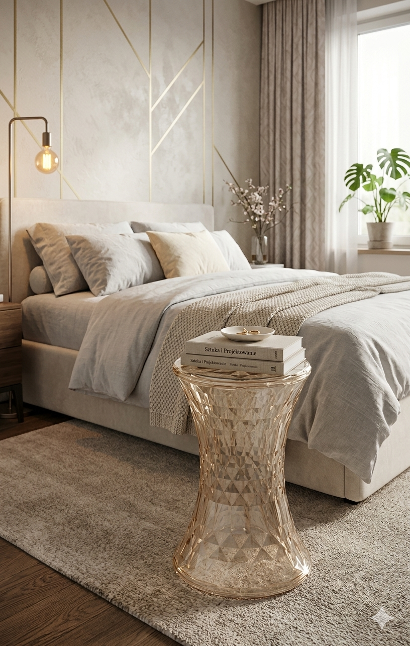 Uniwersalne Zastosowanie: Stołek w kształcie klepsydry doskonale sprawdzi się w różnych wnętrzach - od nowoczesnych salonów, przez eleganckie biura, po minimalistyczne sypialnie. Jego uniwersalność pozwala na wykorzystanie go jako siedzisko, stolik kawowy, czy nawet jako dekoracyjny element wystroju.