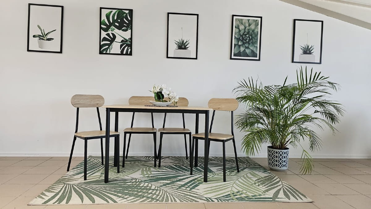 Wybierz nasz zestaw stołu prostokątnego z czterema krzesłami, aby dodać swojemu domowi elegancji, stylu i wygody.
