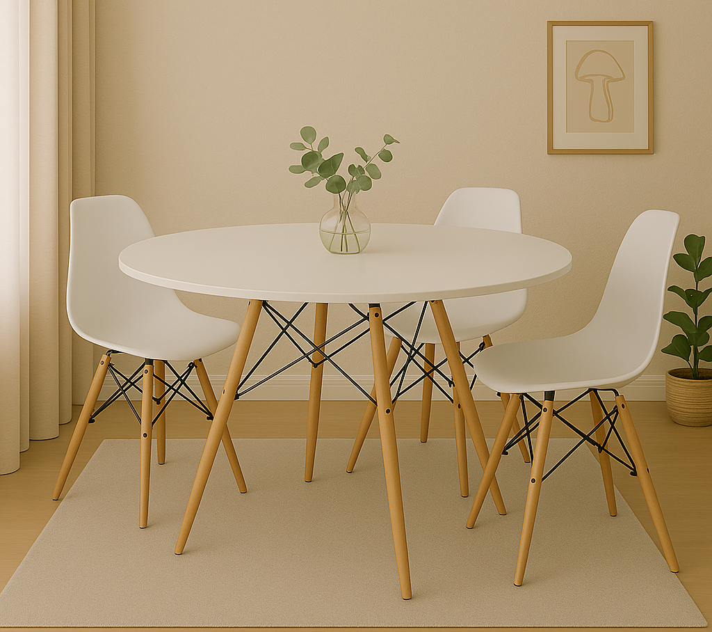 Zestaw stołu okrągłego z płyty MDF i 3 krzesłami: elegancja i funkcjonalność w jednym