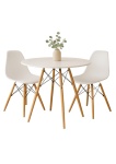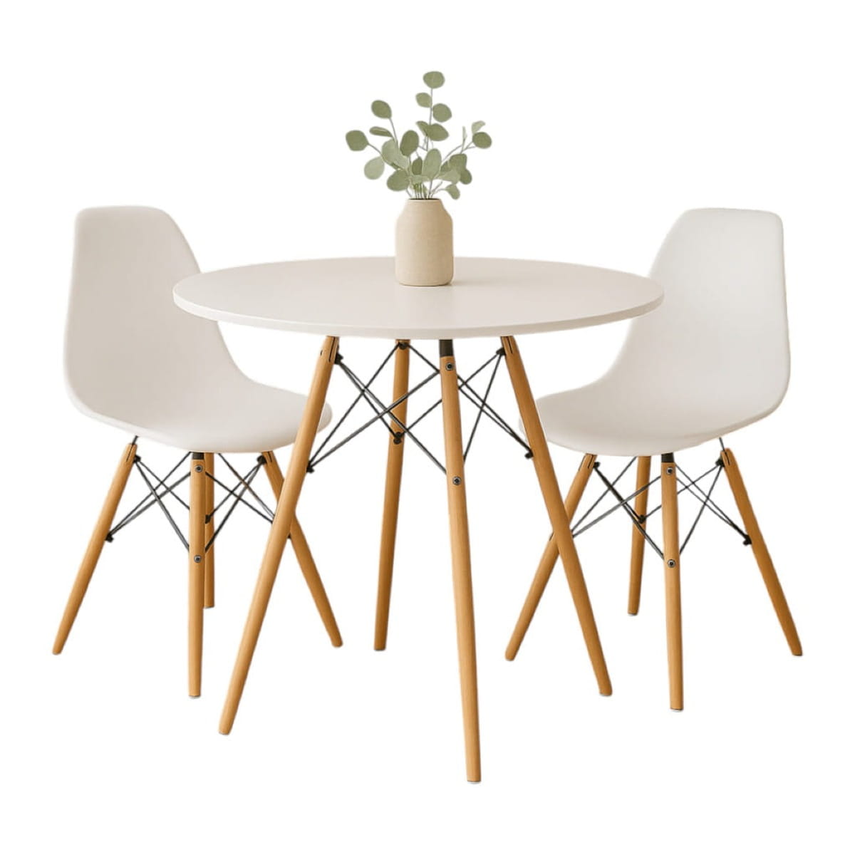 Zestaw stół okrągły Paris 70 cm + 2 krzesła Milano białe, nogi bukowe